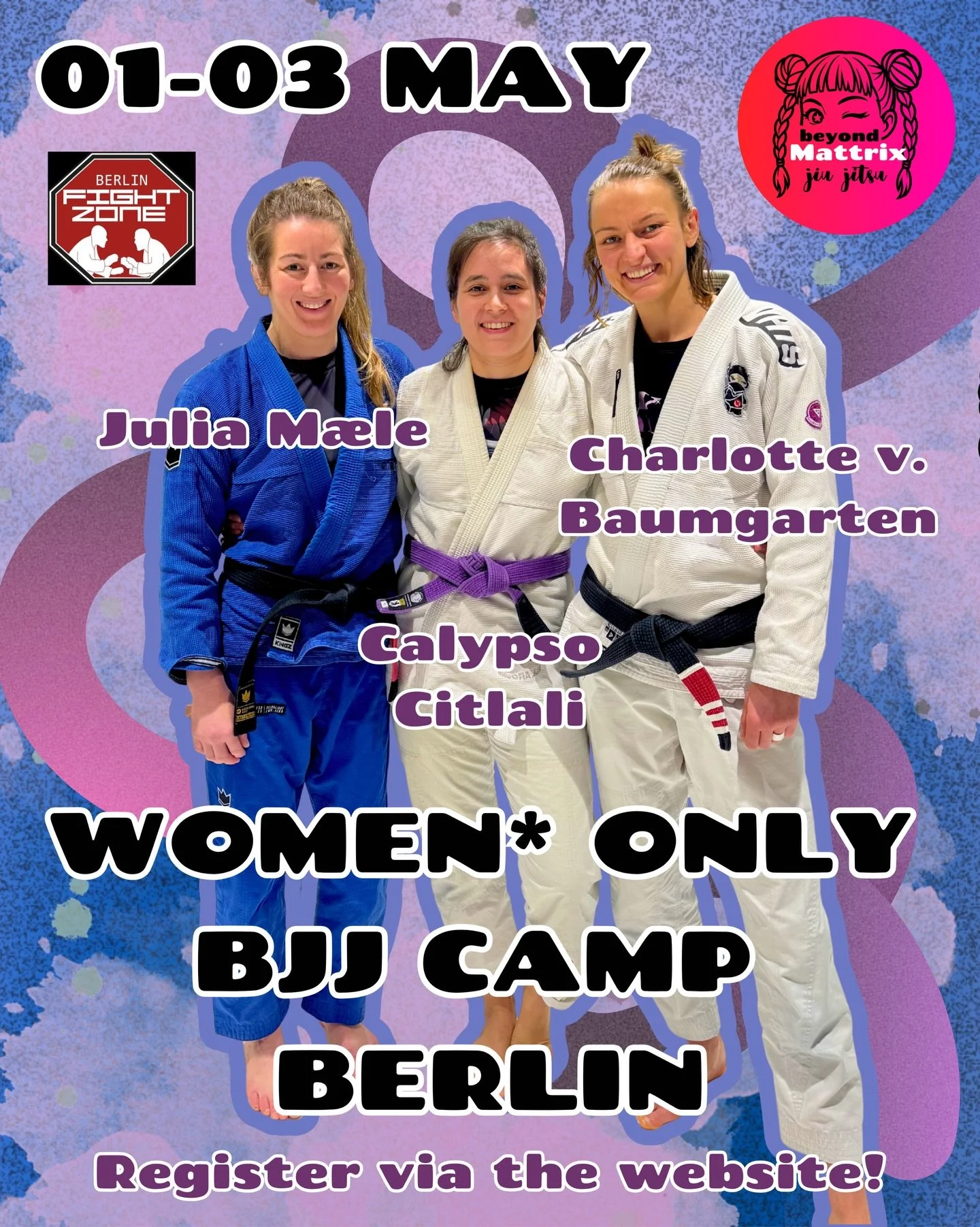 We challenge outdated norms, break down barriers, and create spaces where everyone can train, grow, and thrive. Through weekend camps, workshops, and free rotating Open Mats in Berlin, we enable FLINTA* practitioners: